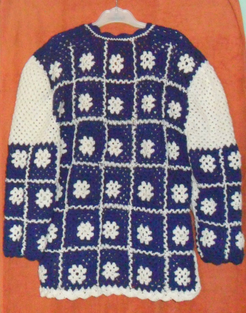 Zilele astea am hotărît să îmi confecţionez o bluziță cu pătrate croșetate din două fire de ață subțire din lână. În internet văd multe scheme și ispita de a încerca era mare. Prima dată am croșetat așa ceva și vreau să scriu aici toate avantajele și dezavantajele procesului de creație, poate ajută pe cineva. Deci, pătratele se croșetează ușor. Dezavantajul meu: ața albastră s-a terminat repede și a trebuit să improvizez ceva, ca aspectul bluziței să ajungă la o stare simpatică.