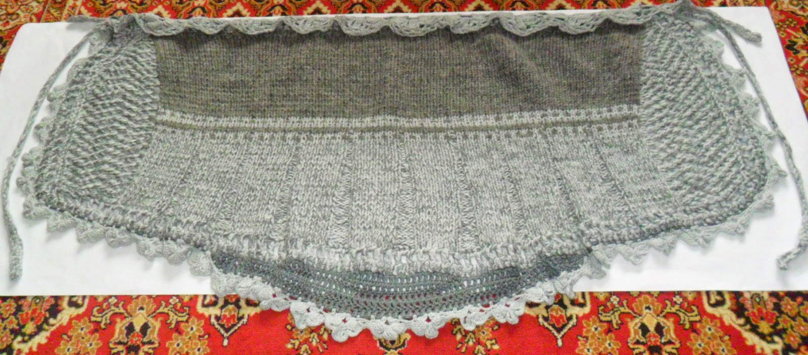 La început am croșetat marginea separat, dar apoi am înțeles, că ăn acest loc trebuiesc cusute bucățile împreună - o ieșire dintr-o situație neprevăzută. |
