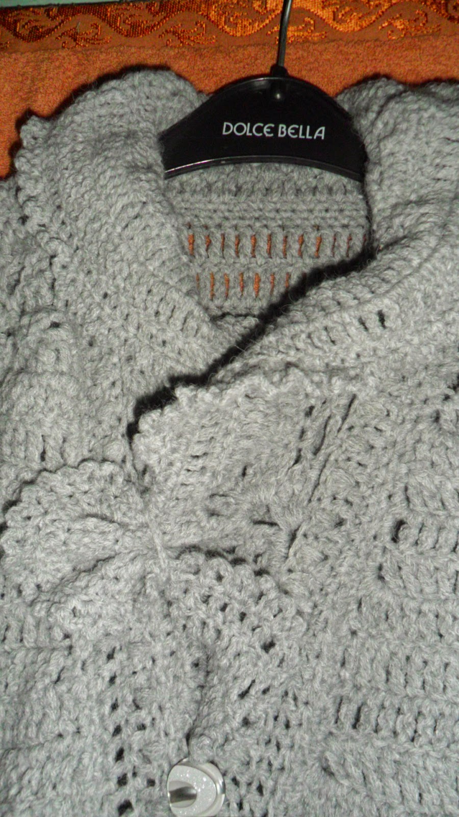 Gulerul mi-a făcut multă bătaie de cap. La inceput am croșetat un singur rând de flori în jurul gâtului, dar articolul părea neterminat. Am croșetat prin metoda probelor, până am obținut ceva potrivit. Cu cheutorile a fost simplu, a mers de la sine, doar că din cauza gulerului, cea de sus a devenit de prisos, însă s-a dovedit foarte binevenită la modelarea gulerului în jurul gâtului pentru o deschizătură mai mică - după dorință.